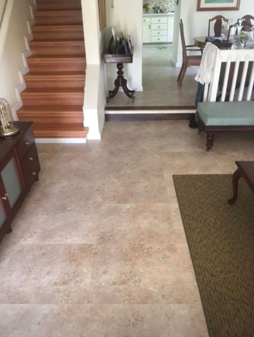 We looked at a handful of similar products, but LVT was able to achieve the look we wanted at the lowest cost long term. No cracking or popping of tiles and no grout lines, giving the installation a nice and clean look.
