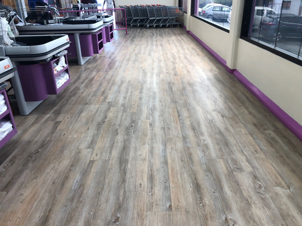 With flooring being an integral part of their refurbishment project, PennySavers Supermarket turned to Dekking’s Kardean LVT flooring for something that complemented the overall design concept they were looking for while achieving the practicality required for a high traffic supermarket. Particular focus was placed on slip resistance which is paramount when it comes to customer safety.